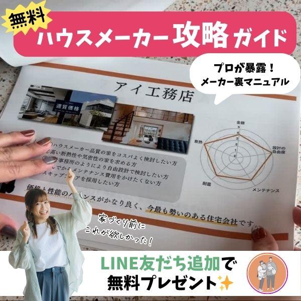 さらに「すーさんのLINE相談窓口」では、ハウスメーカー選び100の質問やハウスメーカー攻略ガイドなど、ハウスメーカー選びにも役立つ無料特典をプレゼントしています。