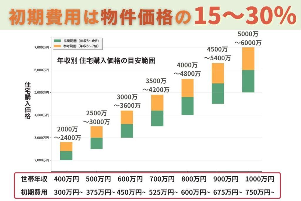 家を建てる際の初期費用は物件価格の15〜30%が目安